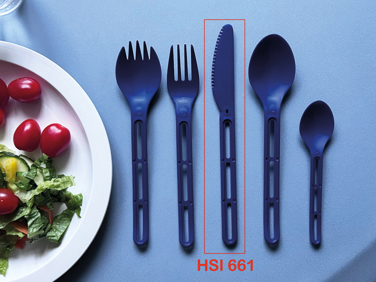 - Couverts en plastique durable et flexible qui ne peuvent pas être affûtés et utilisés comme arme.